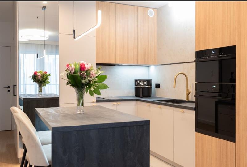 Nowocześnie wykończone zgodnie z projektem. Zabudowy kuchenne wyposażone w wysokiej klasy sprzęt AGD.