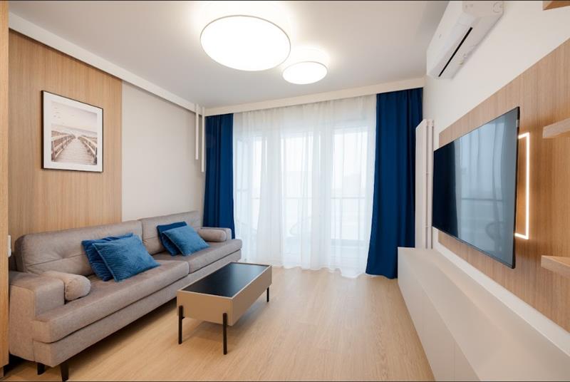 Z Apartamentu rozciąga się piękny, niczym niezagrożony widok na Zatokę Gdańską oraz Park Regana posiada pełny widok na morze, składa się z salonu z aneksem kuchennym, sypialni oraz łazienki.