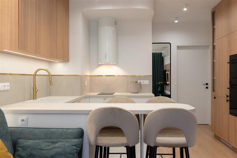Nowocześnie wykończone zgodnie z projektem. Zabudowy kuchenne wyposażone w wysokiej klasy sprzęt AGD.